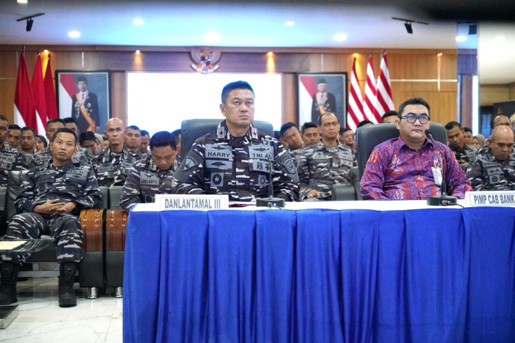 TNI AL-Dispenlantamal3. Komandan Pangkalan Utama TNI Angkatan Laut (Danlantamal) III Jakarta Brigjen TNI (Mar) Harry Indarto, S.E., M.M. menghadiri acara penyerahan paket lebaran kepada seluruh prajurit dan Pegawai Negeri Sipil di jajaran TNI Angkatan Laut oleh Kepala Staf Angkatan Laut (Kasal) Laksamana TNI Muhammad Ali, S.E., M.M., M.Tr.Opsla. melalui video conference (Vicon) dihadiri Wakasal Laksdya TNI Erwin S. Aldedharma, S.E., M.M., M.Sc., Ketua Umum Jalasenastri Ny. Fera Muhammad Ali, dan Wakil Ketua Umum Jalasenastri Ny. Ketty Erwin S. Aldedharma bertempat di Gedung Serbaguna (GSG) Mako Lantamal III Jakarta Jl. Gunung Sahari Ancol, Jakarta Utara, Rabu (03/04/2024).