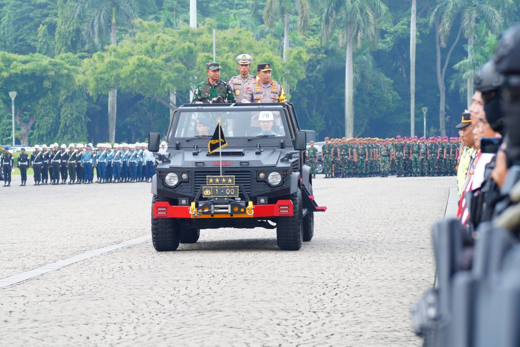 Puspen TNI- Panglima TNI Jenderal TNI Agus Subiyanto, S.E., M.Si., bersama Kapolri Jenderal Pol Drs. Listyo Sigit Prabowo, M.Si., memimpin Apel Gelar Operasi “Ketupat-2024” dalam rangka Pengamanan Idul Fitri 1445 H Tahun 2024, di Lapangan Silang Monas Jakarta Pusat, Rabu (3/4/2024).