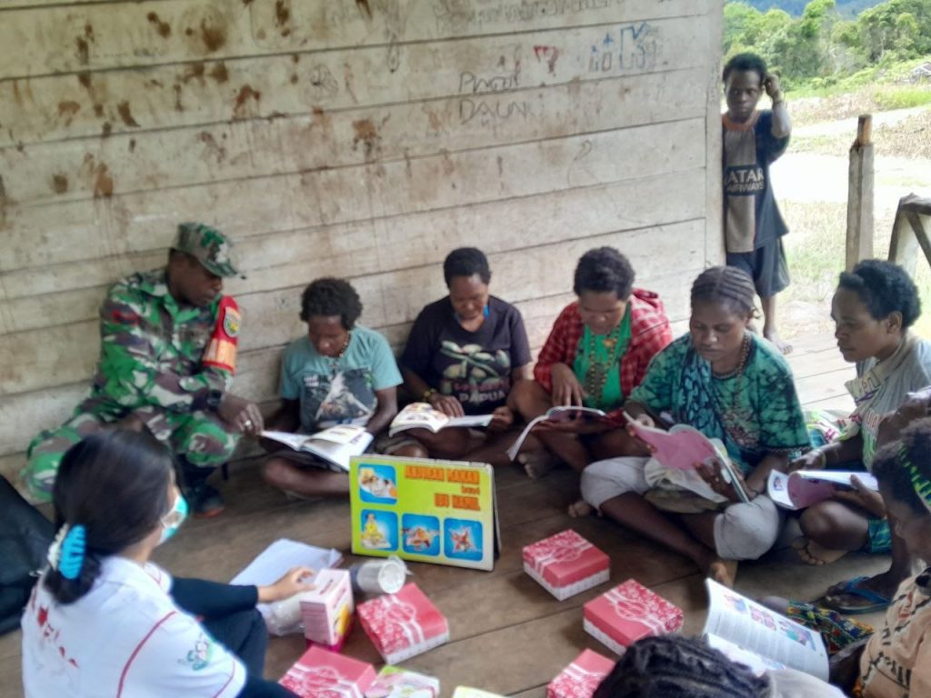 Dalam kesempatan ini, Babinsa tidak hanya mendampingi petugas kesehatan namun juga turut memberikan edukasi kepada masyarakat dengan cara membacakan buku edukasi kesehatan mengingat masih banyak masyarakat setempat yang tidak bisa membaca.