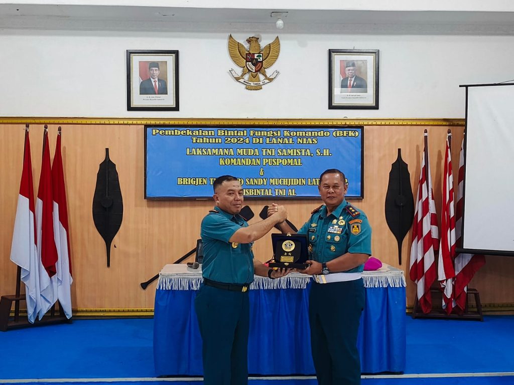 TNI AL, Nias,- Danpuspomal Laksda TNI Samista, S.H., dan Kadisbintalal Brigjen TNI (Mar) Sandy Muchjidin Latief, S.IP., memberikan Pembekalan Fungsi Komando (BFK)kepada seluruh Prajurit Lanal Nias, bertempat di Ruang Bima Mako Lanal Nias, Kabupaten Nias Selatan, Sumatera Utara, Senin (22/4/2024).