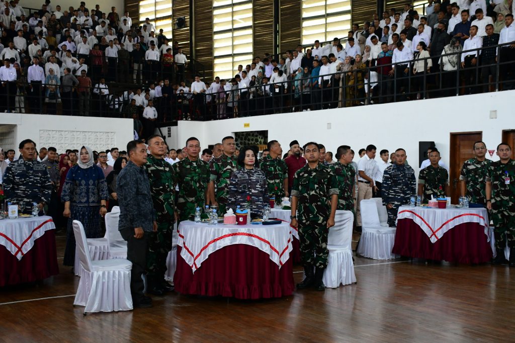 TNI AL, Bandung,- Komandan Lanal Bandung Kolonel Laut (KH/W) Dr. Renny Setiowati, S.T. M.Sc., M.Tr. Hanla., menghadiri Penandatanganan Pakta Integrasi Penerimaan Calon Taruna (Catar) Akademi TNI TA. 2024, bertempat di GOR Saparua, Jalan Banda, Citarum, Bandung Wetan, Kota Bandung, Minggu (28/04/2024).