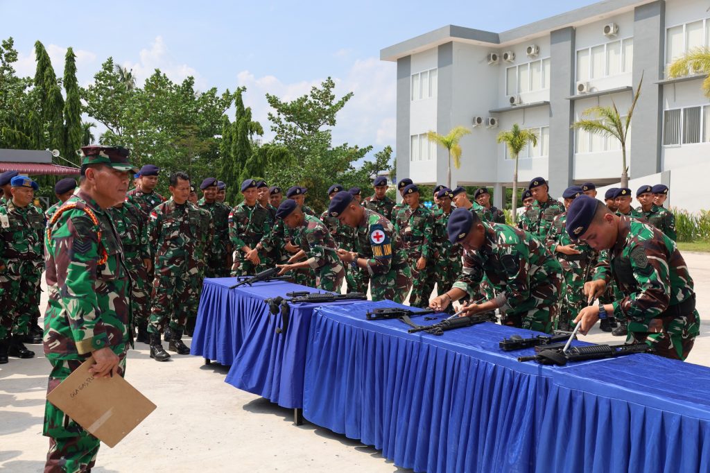 TNI AL, Dumai,- Untuk melatih keterpaduan Komando, kendali, komunikasi antar personel dan kerjasama taktis di lapangan, serta meningkatkan keterampilan perorangan maupun kelompok dalam satu satuan operasi, Pangkalan TNI AL Dumai melaksanakan kegiatan Uji Terampil Gladi Tugas Tempur (Glagaspur) Pangkalan TNI AL Tingkat P1/P2 dan L1/L2 dari Kolat Koarmada I. Kegiatan yang dihadiri Komandan Lanal Dumai Kolonel Laut (P) Boy Yopi Hamel dibuka oleh Dankolat Koarmada I diwakili Komandan Puslat Pasrat Kolat Koarmada I Letkol Mar Dodik Eko Siswanto selaku Wakatim, bertempat di Gedung Wijaya Kusuma Mako Lanal Dumai, Jalan Yos Sudarso No. 1 Dumai, Kamis (02/05/2024).