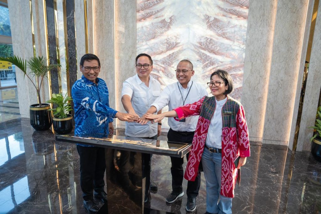 Foto : Wamen BUMN, Kartika Wirjoatmodjo (dua kiri) saat meresmikan The Gade Tower didampingi oleh Wadirut BRI Catur Budi Hartono (batik biru), Komisaris Utama PT Pegadaian, Loro Srinaita Ginting (batik merah) Direktur Utama Pegadaian Damar Latri Setiawan (kemeja putih)