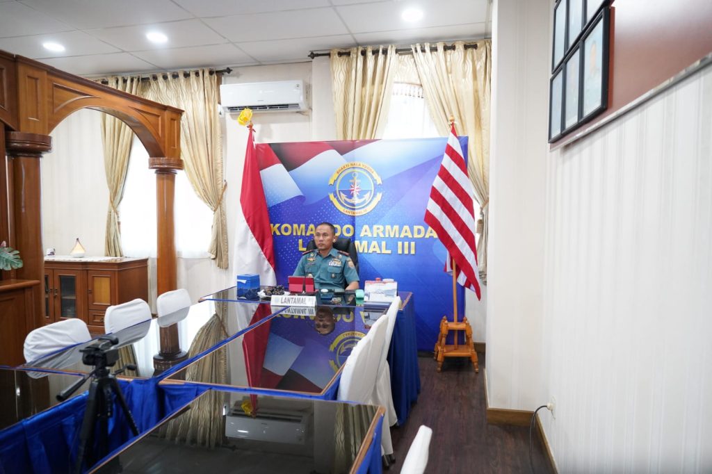 TNI AL-Dispenlantamal3. Komandan Pangkalan Utama TNI Angkatan Laut (Danlantamal) III Jakarta Brigjen TNI (Mar) Harry Indarto, S.E., M.M. diwakili Wakil Komandan (Wadan) Lantamal III Jakarta Kolonel Laut (P) Whisnu Kusardianto, S.E., M.H. menghadiri penutupan focus group discussion (FGD) Komando Armada (Koarmada) RI tahun 2024 yang dipimpin Kepala Staf Koarmada (Kaskoarmada) RI Laksda TNI Didong Rio Duto Purwo Kuntjoro, S.T., M.A.P., M.Tr.(Han). mewakili Pangkoarmada RI Laksdya TNI Dr. Denih Hendrata, S.E., M.M., CHRMP. secara video conference (Vicon) bertempat di ruang rapat Wadanlantamal III Jakarta Jl. Gunung Sahari No. 2 Ancol, Jakarta Utara, Rabu (15/05/2024).
