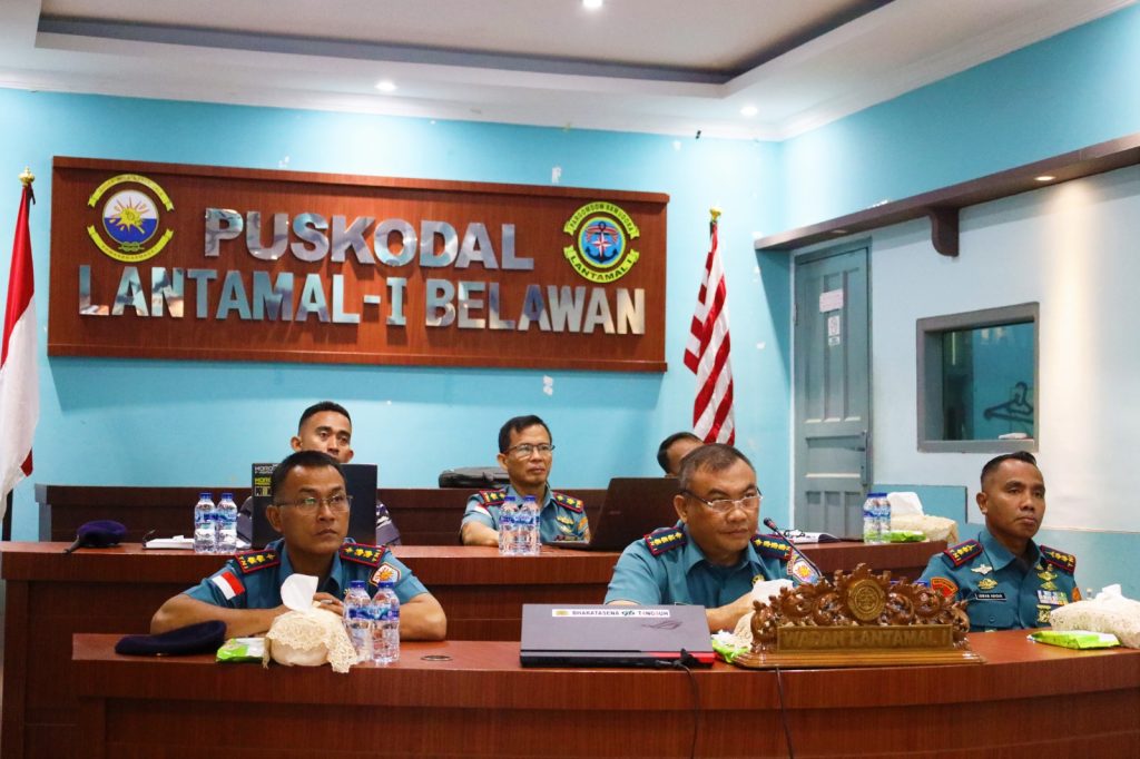 TNI AL, Belawan,- Komandan Pangkalan TNI Angkatan Laut I (Danlantamal I) Brigjen TNI (Mar) Jasiman Purba, S.E., CHRMP., yang diwakili Wadan Lantamal I Kolonel Laut (P) Siswo Widodo, S.T., mengikuti Focus Group Discussion (FGD) Koarmada RI dengan tema ”Konsep Bertempur Matra Laut”, dipimpin oleh Pangkoarmada RI Laksamana Madya TNI Dr. Denih Hendrata, S.E., M.M., CHRMP., melalu Vicon, bertempat di Ruang Puskodal Lantamal I, Jalan Serma Hanafiah No. 01 Belawan, Sumatera Utara, Selasa (14/5/2024).