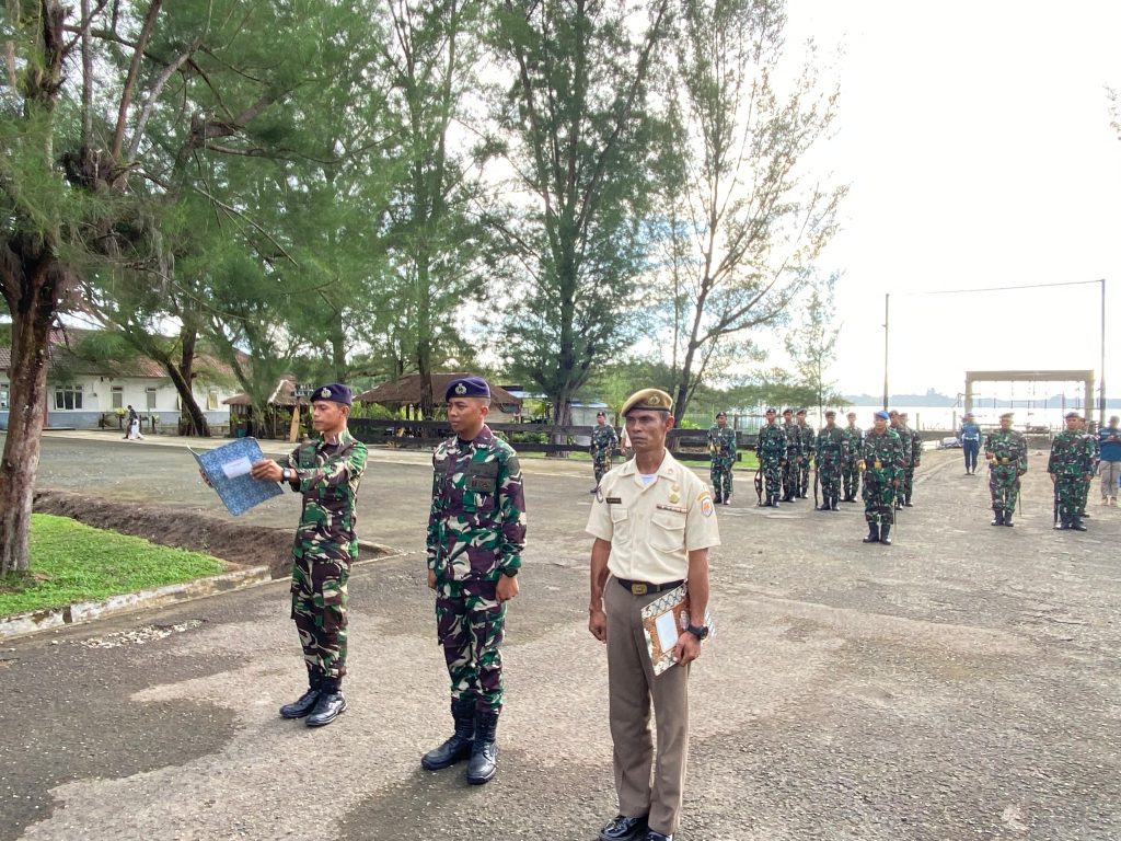 Komandan Pangkalan TNI AL Simeulue selaku Inspektur Upacara membacakan amanat Kasal Laksamana TNI Dr. Muhammad Ali, S.E., M.M., M.Tr. Opsla., pada Upacara Bendera 17 Mei 2024.
