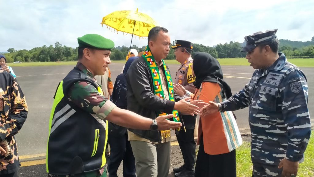 TNI AL, Simeulue,- Pangkalan TNI AL Simeulue Komandan Pangkalan TNI AL Letkol Laut (P) Oyu Mulia Sukmana, S.T., M.T., M.Tr. Opsla., didampingi Pasintel Lanal Simeulue Kapten Laut (P) Amir Husin Lubis menghadiri kegiatan Penyambutan Kedatangan Danrem 012/TU Kolonel Inf Deni Gunawan, S.E., dalam rangka kunjungan kerja di wilayah Kodim 0115/Simeulue, bertempat di Bandar Udara Desa Lasikin, Kecamatan Teupah Tengah, Sabtu (25/05/2024).