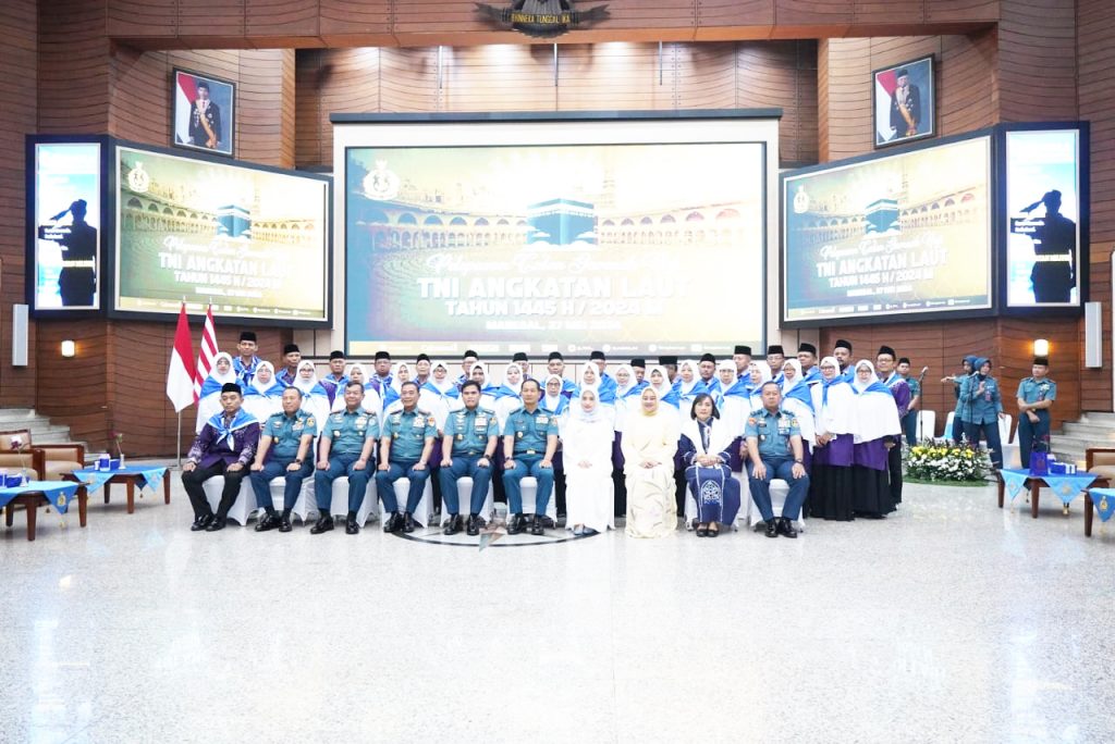 TNI AL–Dispenlantamal3. Komandan Pangkalan Utama TNI Angkatan Laut (Danlantamal) III Jakarta Brigjen TNI (Mar) Harry Indarto, S.E., M.M. menghadiri acara pelepasan calon jemaah haji reguler dan Tim Pelaksana Urusan Haji TNI Angkatan Laut tahun 1445 H/2024 M dipimpin Kepala Staf Angkatan Laut (Kasal) Laksamana TNI Muhammad Ali, S.E., M.M., M.Tr.Opsla. dan dihadiri Wakasal Laksdya TNI Erwin S. Aldedharma, S.E., M.M., M.Sc., Ketua Umum Jalasenastri Ny. Fera Muhammad Ali, dan Wakil Ketua Umum Jalasenastri Ny. Ketty Erwin S. Aldedharma bertempat di Auditorium Yos Sudarso Denma Mabesal Cilangkap, Jakarta Timur, Senin (27/05/2024).