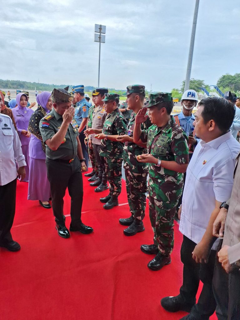 TNI AL, Bintan,- Komandan Lanal Bintan Letkol Laut (P) Eko Agus Susanto, S.E., M.M., turut serta menyambut kedatangan Panglima TNI Jenderal TNI Agus Subiyanto, S.E., M.Si., yang didampingi Ketua Umum Dharma Pertiwi Ny. Evi Agus Subiyanto beserta rombongan di Tanjung Pinang dalam rangka kunjungan kerja, Selasa (28/05/2024).