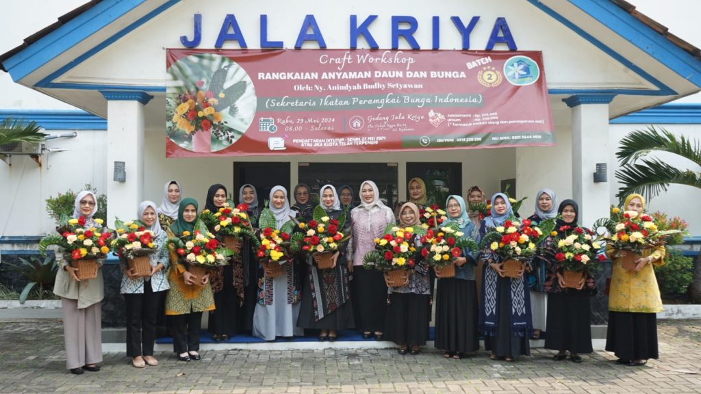 TNI AL – Dispenlantamal3. Ketua Koordinator Cabang (Korcab) III Daerah Jalasenastri Armada (DJA) I Ny. Neneng Harry Indarto didampingi pengurus Jala Kriya membuka pelatihan anyaman daun dan bunga batch ke-2 yang diikuti 12 peserta dari unsur Jalasenastri, unsur Persit dan IKKT PWA dengan menghadirkn narasumber Ny. Anindyah Budhy Setyawan bertempat di Gedung Jala Kriya Jl. Tabah Raya No.24 Komplek TNI AL, Jakarta Utara, Rabu (29/05/2024).