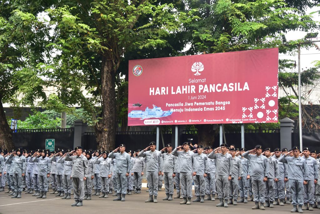 Bakamla RI/Indonesia Coast Guard-Seluruh personel Bakamla RI melaksanakan upacara Peringatan Hari Lahir Pancasila Tahun 2024. Upacara dipimpin oleh Direktur Strategi Keamanan Laut Bakamla RI Laksma Bakamla Dafit Santoso, di lapangan apel Mabes Bakamla RI, Jakarta Pusat, Sabtu (1/6/2024).