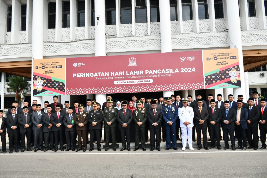 TNI AL, Sabang,- Komandan Pangkalan TNI AL Sabang (Danlanal Sabang) Kolonel Laut (P) Gita Muharam, M.Sc., turut hadir dan peringati Hari Lahir Pancasila di Halaman Kantor Gubernur Aceh, bertindak sebagai lnspektur Upacara PJ. Gubernur Aceh Bustami Hamzah, S.E., M.Si., Komandan Upacara Kabag Protokol Setda Aceh Muhammad Rahmadin, Sabtu (01/6/2024).