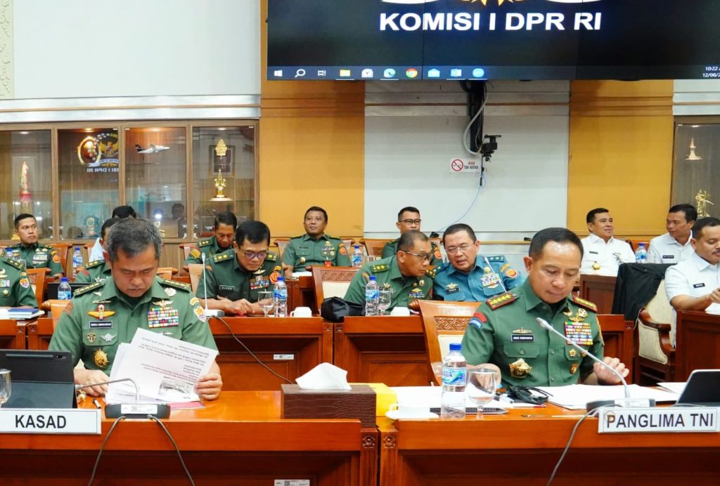 Puspen TNI-Panglima TNI Jenderal TNI Agus Subiyanto menghadiri Rapat Kerja (Raker) bersama Komisi I DPR RI membahas realisasi dan evaluasi pelaksanaan APBN TA 2023, dan pembahasan rencana anggaran dan rencana kerja pemerintah Kemhan/TNI tahun 2025, bertempat di Rupat Komisi I DPR RI Senayan, Jakarta, Rabu (12/6/2024).