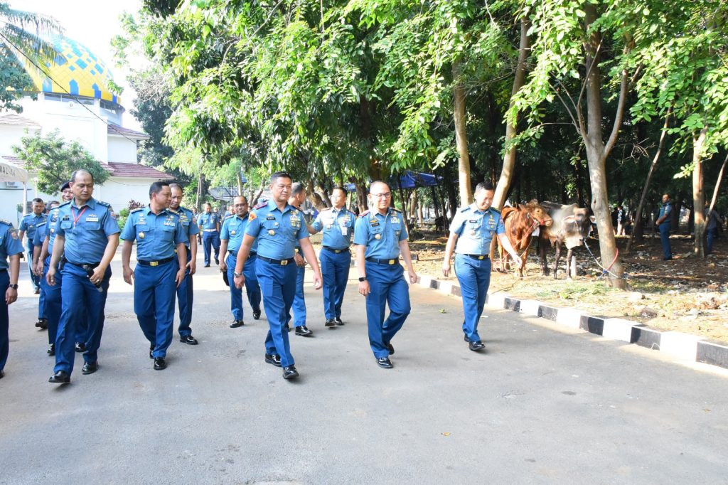 TNI AL-Dispenlantamal3. Komandan Pangkalan Utama TNI Angkatan Laut (Danlantamal) III Jakarta Brigjen TNI (Mar) Harry Indarto, S.E., M.M. menyerahkan secara simbolis hewan kurban sebanyak 29 ekor terdiri dari 12 ekor sapi dan 17 ekor kambing dalam rangka menyambut Hari Raya Iduladha 1445 H/2024 M kepada Ketua Panitia Iduladha dan Kurban Lantamal III Jakarta Mayor Laut (P) Aris Isnawan, ikut serta menyerahkan hewan kurban Wadan Lantamal III Jakarta Kolonel Laut (P) Whisnu Kusardianto, S.E., M.H. bertempat di depan masjid Miftahul Jannah Lantamal III Jakarta Jl. Gunung Sahari Ancol, Jakarta Utara, Rabu (19/06/2023).