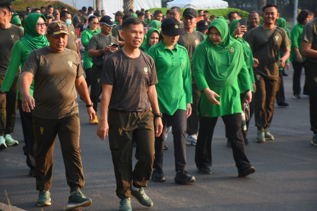 Kolonel Inf Bangun I.E. Siregar, S.H., MIPOL. didampingi Ketua Persit Kartika Chandra Kirana Cabang XV Kodim 0501 PD Jaya Ny. Herawati Bangun Siregar serta Kasdim 0501/JP Letkol Inf Okky Risdianto, S.I.P didampingi Wakil Persit Kartika Chandra Kirana Cabang XV Kodim 0501 PD Jaya Ny. Iin Okky Risdianto hadir langsung dalam kegiatan olahraga bersama ini.