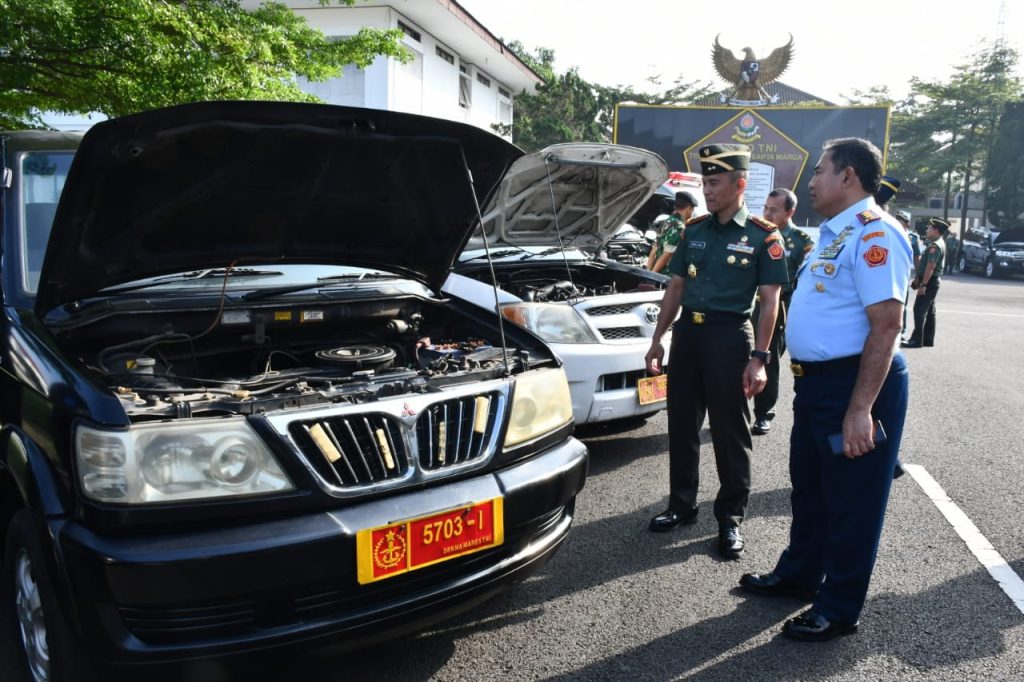 Komandan Sesko TNI mengecek dan memeriksa setiap kendaraan yang dilalui yang telah berjajar di halaman parkir Gedung Sarasan dan depan Gedung Ditum dengan jumlah kendaraan sebanyak 48 unit mobil dan 2 unit bis, meliputi kelengkapan surat administrasi berkendaraan, mengecek kondisi fisik kendaraan meliputi kebersihan mobil dan fungsi pada bagian-bagian kendaraan serta kendaraan yang sudah tidak layak untuk dipergunakan atau dioperasionalkan.