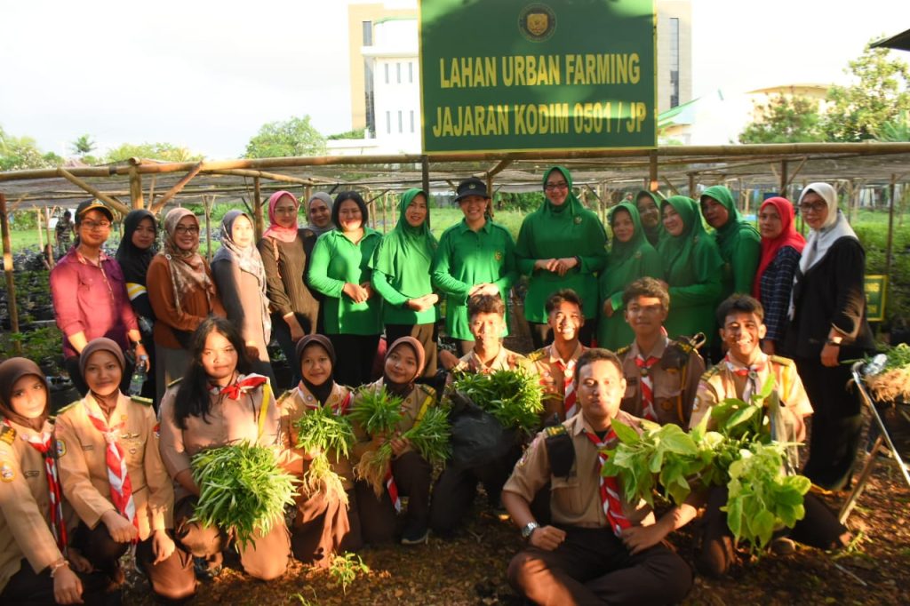 Dalam kegiatan hari ini Ibu Ketua dan Wakil Ketua Persit KCK Ranting XV PD Jaya Ny. Herawati Bangun Siregar dan Ny. Okky Risdianto, Perwira Staf, Danramil Jajaran Kodim 0501/JP, Persit serta Personil Kodim 0501/JP begitu asyik dan riang gembira saat memanen sayur mayur hasil Urban Farming Kodim 0501/JP.