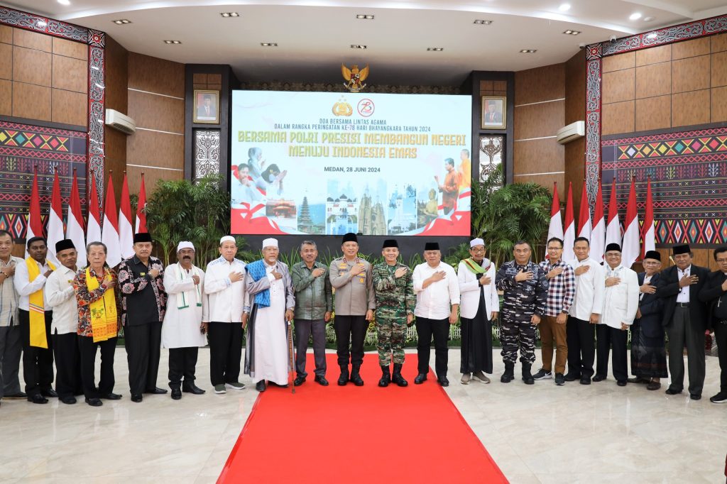 TNI AL, Belawan,- Komandan Pangkalan Utama TNI Angkatan Laut I (Danlantamal) I Brigjen TNI (Mar) Jasiman Purba, S.E., CHRMP., diwakili Wadan Lantamal I Kolonel Laut (P) Siswo Widodo, S.T., menghadiri acara Doa Bersama Lintas Agama dalam rangka memperingati Hari Bhayangkara Ke-78 melalui Vicon, bertempat di Aula Tribrata, Mapolda Sumut, Jalan Sisingamangaraja, Sumatera Utara, Jumat (28/6/2024).