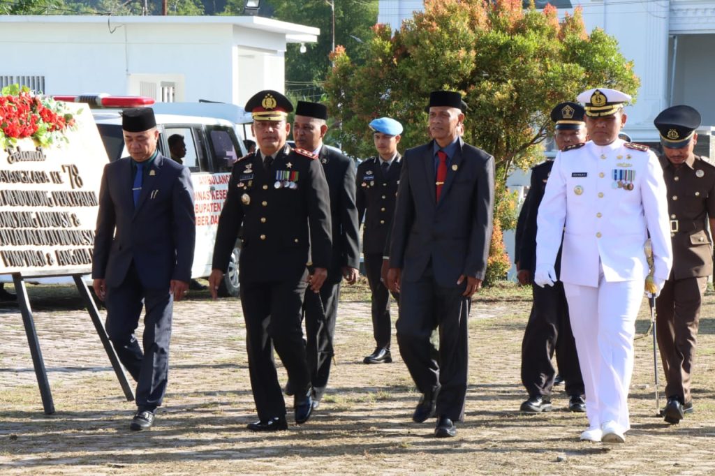 TNI AL, Simeulue,- Komandan Pangkalan TNI AL Simeulue Letkol Laut (P) Oyu Mulia Sukmana, S.T., M.T., M.Tr.Opsla., didampingi Ketua Cabang 8 Korcab l DJA I Ny. Meylina Oyu Mulia, menghadiri kegiatan Upacara dan Acara Syukuran HUT Bhayangkara Ke-78 Tahun 2024 dengan Tema “Presisi Menuju Indonesia Emas Transformasi Ekonomi Yang Inklusif dan Berkelanjutan”, bertempat di Lapangan Pendopo Bupati Simeulue, Desa Air Dingin, Kecamatan Simeulue Timur, Kabupaten Simeulue, Senin (01/07/2024).