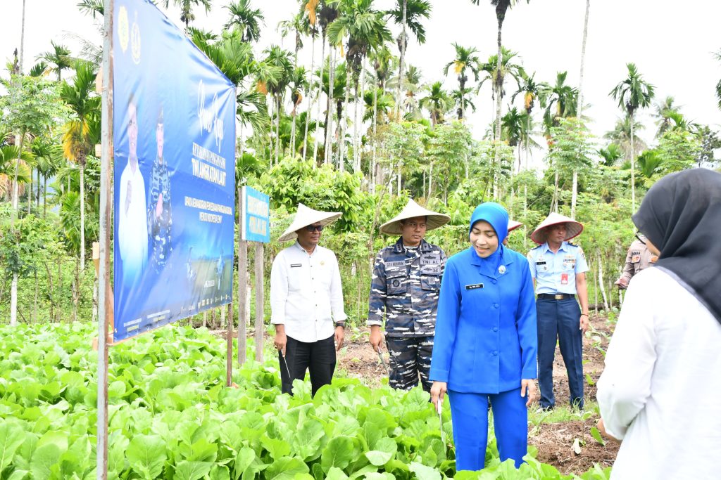 TNI AL Sabang_Komandan Lanal Sabang (Danlanal Sabang), Kolonel Laut (P) Gita Muharram, M.Sc dan Ketua Jalasenastri Cabang 3 Korcab I DJA I, Ny.Tika Muharram beserta unsur Forkopimda Sabang melakukan Panen Raya Sayur-sayuran (Sawi), bertempat di Gampong Payaseunara, Kec. Sukamakmue, Kota Sabang, Rabu (10-07-2024)