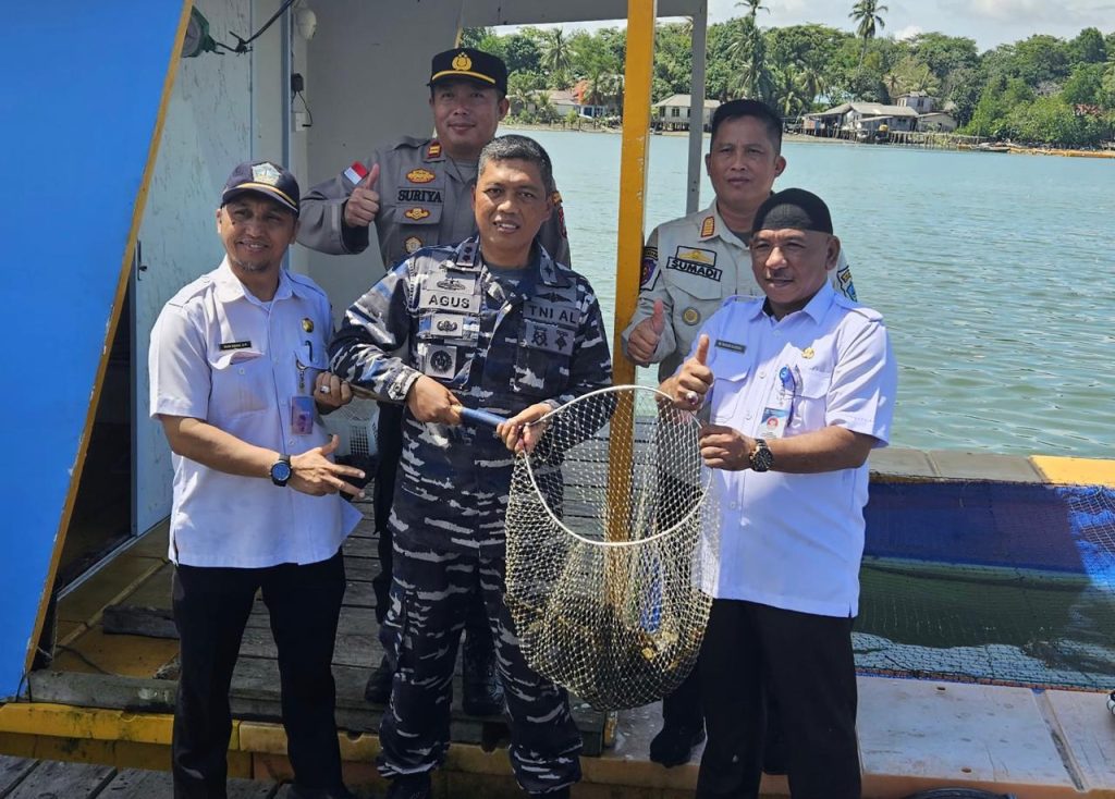 Komandan Lanal Bintan Letkol Laut (P) Eko Agus Susanto, S.E., M.M., didampingi Perwira Staf Lanal Bintan serta Ketua Cabang 5 Korcab IV DJA I, melaksanakan Panen Raya Ikan Kerapu dalam rangka Program Ketahanan Pangan Lanal Bintan.