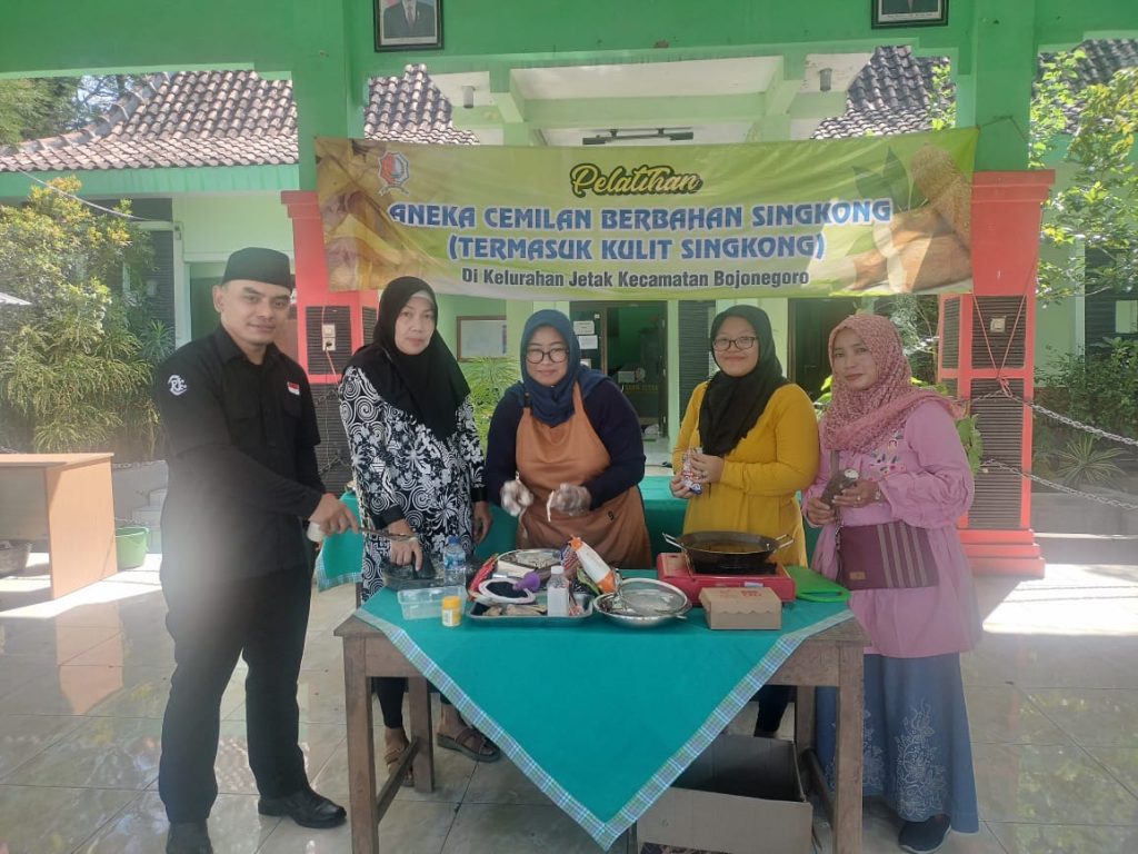 Upaya zero waste dalam kegiatan pelatihan pembuatan olahan singkong di balai Kelurahan Jetak dilaksanakan pada hari Kamis tanggal 11 Juli 2024. Bagaimana bisa zero waste? Dari kulit singkong, diolah menjadi Kusk Crispy atau kulit singkong krispi. Kemudian selesai perebusan singkong, air disaring dan ditambahkan jahe dan gula menjadi minuman yang baik untuk penderita gangguan asam lambung dengan nama Sasija (Sari singkong jahe). Sedangkan singkong nya diolah menjadi stik singkong yang akan bersaing dengan kentang goreng di ranah kuliner.