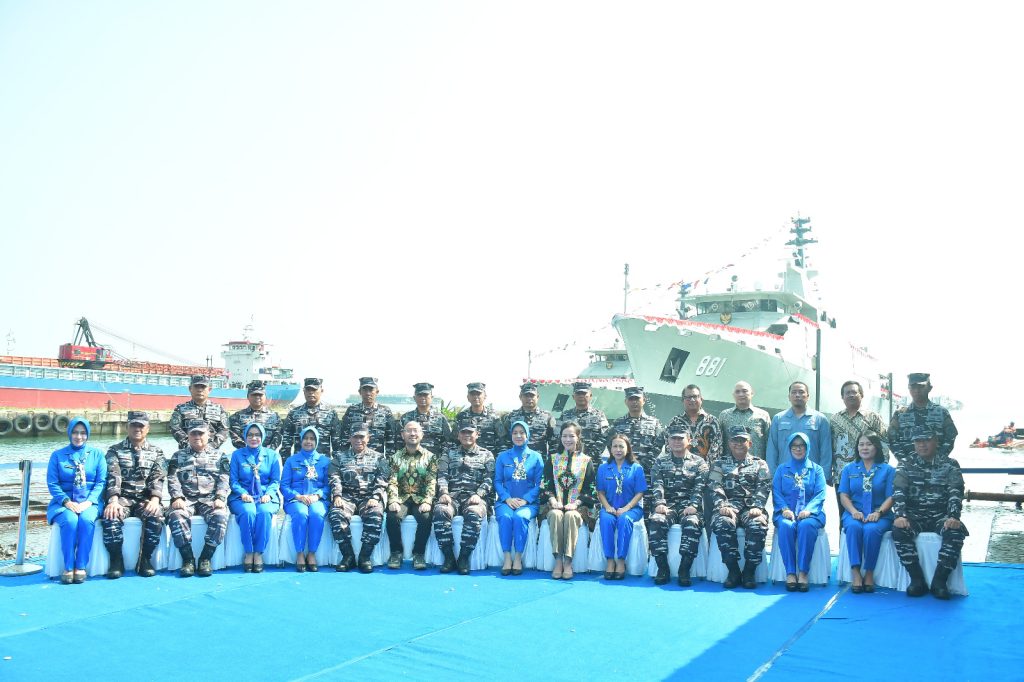 TNI AL-Dispenlantamal3. Komandan Pangkalan Utama TNI Angkatan Laut (Danlantamal) III Jakarta Brigjen TNI (Mar) Harry Indarto, S.E., M.M. dan Ketua Koordinator Cabang (Korcab) III Daerah Jalasenastri Armada (DJA) I Ny. Neneng Harry Indarto menghadiri acara shipnaming dan launching dua kapal patroli cepat (PC) 60 meter (M) dipimpin oleh Kepala Staf Angkatan Laut (Kasal) Laksamana TNI Dr. Muhammad Ali, S.E., M.M., M.Tr.Opsla. dihadiri Ketua Umum Jalasenastri Ny. Fera Muhammad Ali, bertempat di galangan kapal PT Caputra Mitra Sejati, Merak, Banten, Jumat (12/07/2024).