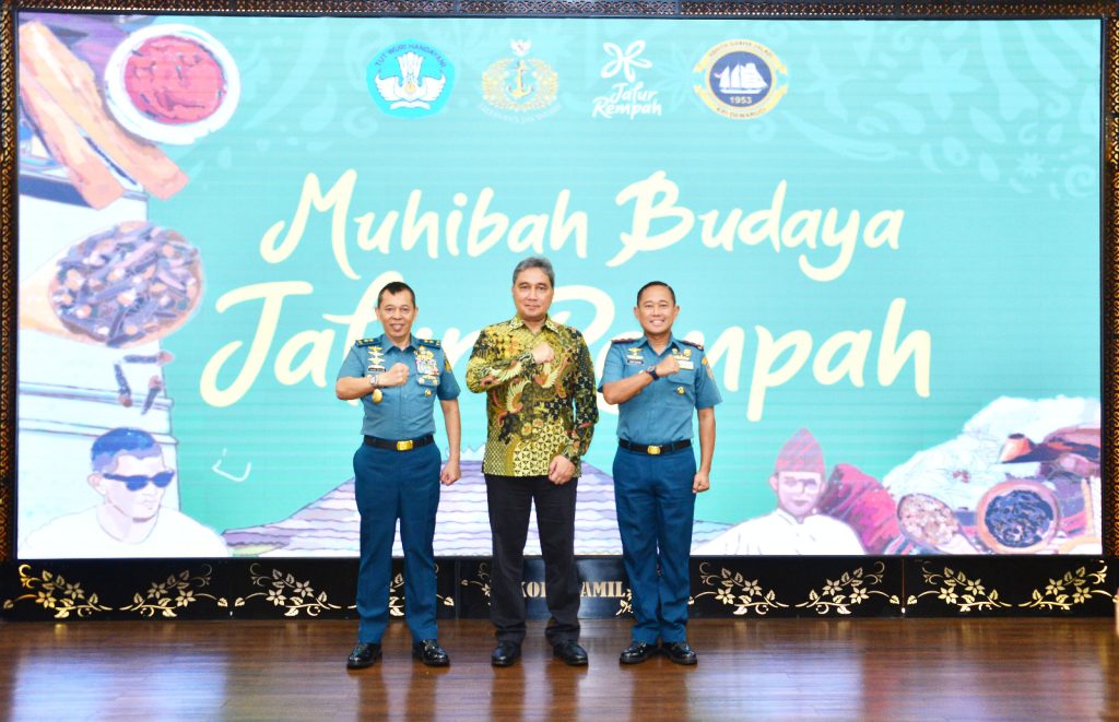 TNI AL-Dispenlantamal3. Komandan Pangkalan Utama TNI Angkatan Laut (Danlantamal) III Jakarta Brigjen TNI (Mar) Harry Indarto, S.E., M.M. menghadiri acara penyambutan Pelayaran Muhibah Budaya dan Festival Jalur Rempah tahun 2024 yang diterima oleh Direktur Jenderal Kebudayaan Kementerian Pendidikan, Kebudayaan, Riset dan Teknologi (Dirjen Kebudayaan Kemendikbudristek) RI Hilmar Farid, B.A., M.A., Ph.D. dihadiri Asisten Operasi Kepala Staf Angkatan Laut (Asops Kasal) Laksda TNI Yayan Sofyan bertempat di lapangan M. Silam Mako Kolinlamil, Jakarta Utara, Senin (15/07/2024).
