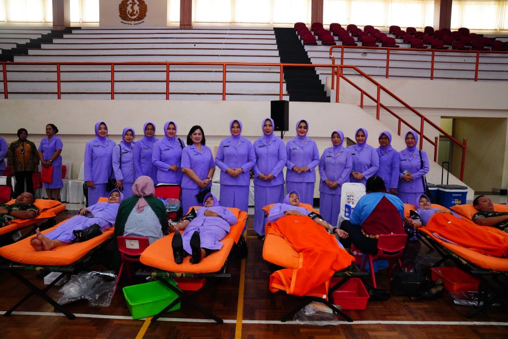 Puspen TNI-Dalam rangka memperingati Hari Ulang Tahun nya yang ke-58, Ikatan Kesejahteraan Keluarga TNI (IKKT) Pragati Wira Anggini (PWA) bekerjasama dengan PMI Pusat dan PMI DKI Jakarta menyelenggarakan kegiatan donor darah yang dihadiri oleh Ketua Umum (Ketum) IKKT PWA Ny. Evi Agus Subiyanto, bertempat di GOR A. Yani Mabes TNI, Cilangkap, Jakarta Timur. Jum’at (19/7/2024).
