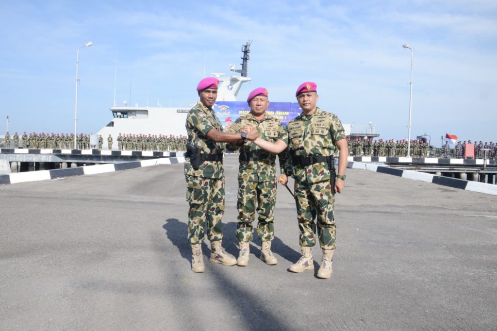 TNI AL, Belawan,- Komandan Pangkalan Utama TNI Angkatan Laut I (Danlantamal I) Brigjen TNI (Mar) Jasiman Purba, S.E., CHRMP., didampingi Ketua Korcab I DJA I Ny. Othy Jasiman Purba, menghadiri Upacara Pengambilan Sumpah dan Penandatanganan Pakta Integritas serta Serah Terima Jabatan (Sertijab) Danyonmarhanlan I dari Letkol Mar Irwan Abidin, M.Tr.Opsla., CBEI., kepada Mayor Mar Remon Dabukke, M.Tr. Opsla., dipimpin oleh Komandan Pasmar 1 Brigjen TNI (Mar) Umar Farouq, S.A.P., CHRMP., M.Tr.Opsla., M.Han., bertempat di Lapangan Apel Mako Lantamal I, Jalan Serma Hanafiah No. 01 Belawan, Selasa (23/7/2024).