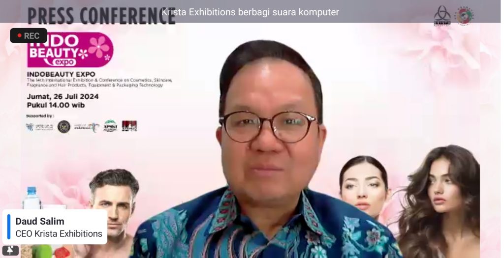 Daud D Salim selaku Chief Executive Officer (CEO) Krista Exhibitions saat memberikan sambutannya di konferensi pers mengatakan “Industri kecantikan terus berkembang kearah positif di setiap tahunnya. Pameran IndoBeauty Expo 2024 yang telah diselenggarakan ke 14 kalinya mengalami kenaikan jumlah peserta sekitar 30 % dari tahun lalu. “Krista Exhibitions optimis melalui pameran ini dapat mendorong pengembangan industri komestik dalam negeri agar mampu berdaya saing di pasar global dan melalui pameran ini juga dapat memberikan informasi kepada pengusaha di bidang kecantikan untuk mendapatkan inovasi teknologi maupun produk terbaru bagi wanita, pria, anak – anak bahkan balita” kata Daud D Salim.