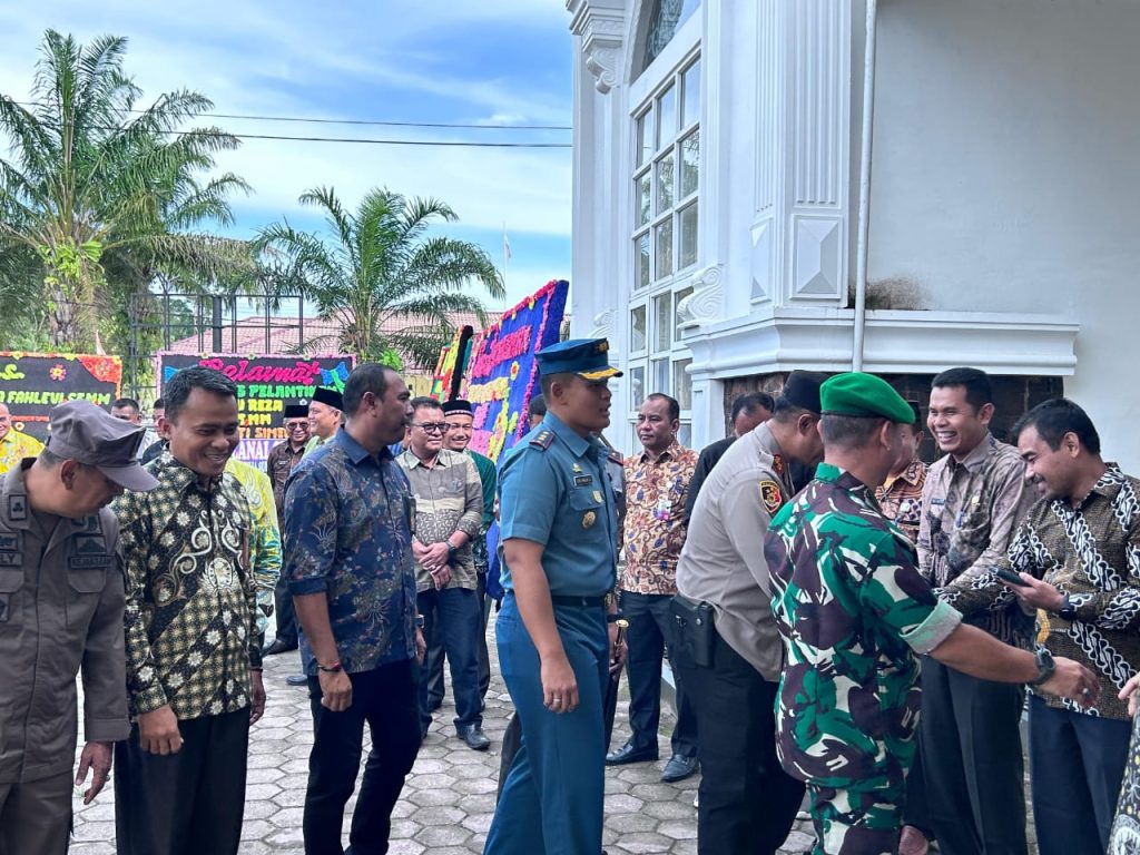 TNI AL, Simeulue,- Komandan Pangkalan TNI AL Simeulue Letkol Laut (P) Oyu Mulia Sukmana, S.T., M.T., M.Tr.Opsla., didampingi Ketua Cabang 8 Korcab l DJA I Ny. Meylina Oyu Mulia, menghadiri kegiatan Peusijuek dan Ramah Tamah penyambutan Pj. Bupati Simeulue Teuku Reza Fahlevi, S.E., M.M., beserta Ny. Tenaldasia Zuriaty, S.STP., bertempat di Pendopo Bupati Simeulue, Desa Air Dingin, Kecamatan Simeulue Timur, Kabupaten Simeulue, Kamis (25/07/2024).