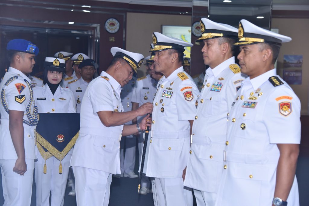 TNI Angkatan Laut, Koarmada RI, Jakarta 1 Agustus 2024-Panglima Komando Armada Republik Indonesia (Pangkoarmada RI) Laksamana Madya TNI Dr. Denih Hendrata, S.E., M.M., CHRMP., memimpin serah terima (sertijab) dua jabatan Strategis di lingkungan Koarmada RI, yakni Inspektur (Ir) Koarmada RI dan Asisten Personel (Aspers) Pangkoarmada RI, bertempat di Lounge Matjan Kumbang, Mako Koarmada RI, Jakarta, Kamis 1 Agustus 2024.