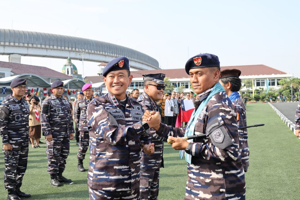 TNI AL-Dispenlantamal3. Komandan Pangkalan Utama TNI Angkatan Laut (Danlantamal) III Jakarta Brigjen TNI (Mar) Harry Indarto, S.E., M.M. menghadiri acara penyambutan ASEAN-Plus Cadet Sail (APCS) 2024 dengan menggunakan KRI Bima Suci oleh Panglima Lintas Laut Militer (Pangkolinlamil) Laksda TNI Hudiarto Krisno Utomo, M.A., M.M.S., P.S.C.(Joint), CHRMP, bertempat di lapangan M. Silam Mako Kolinlamil, Jakarta Utara, Sabtu (03/08/2024).