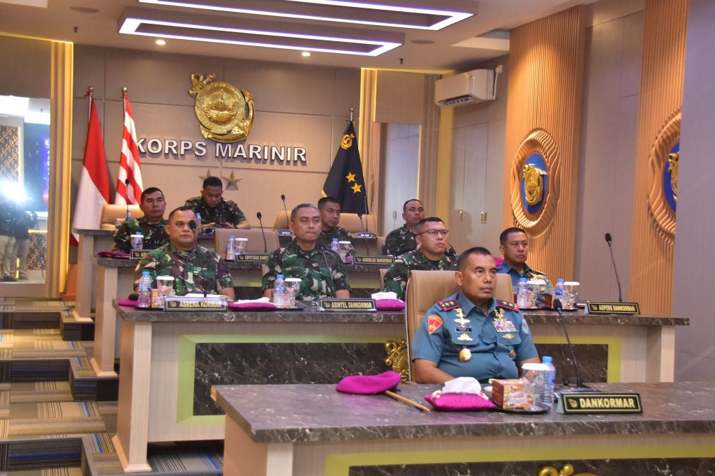 Hadir mendampingi Dankormar dalam Vicon upacara pembukaan Latihan Armada Jaya XLII TA 2024, para Asisten Komandan Korps Marinir, Kepala Pusat Komando dan Pengendalian Korps Marinir.