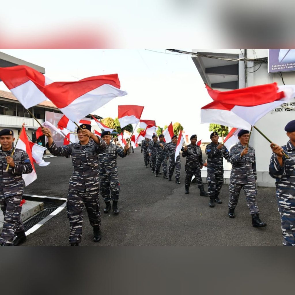 Komandan Lanal Sibolga Letkol Laut (P) Robiyanto, S.H., M.Tr. Hanla., memimpin Prajurit Benteng Samudra Perkasa Lanal Sibolga membagikan Bendera Merah Putih dengan ukuran sedang sebanyak 79 buah dan bendera kecil sebanyak 100 buah di depan Mako Lanal Sibolga, Jalan S. Parman, Ps. Belakang Sibolga Kota.