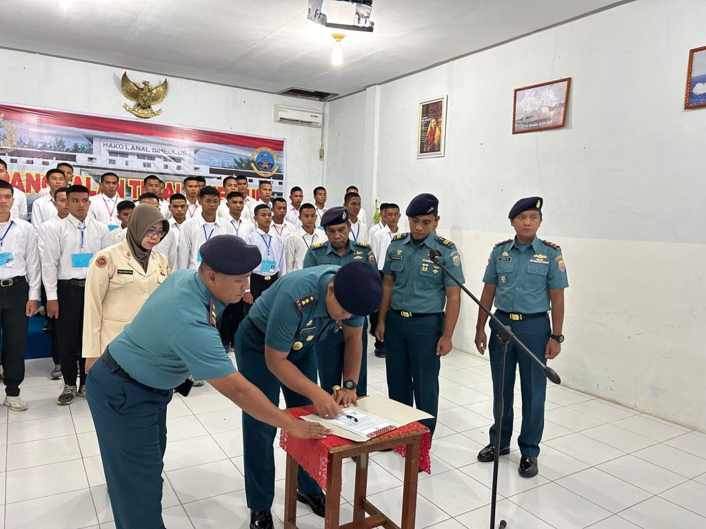 TNI AL, Simeulue,- Komandan Pangkalan TNI AL Simeulue Letkol Laut (P) Oyu Mulia Sukmana, S.T., M.T., M.Tr.Opsla., melaksanakan Penandatanganan Pakta Integritas Panda/Sub Panda Penerimaan Caba/Cata PK Gelombang ll TA. 2024 secara Vidio Konference (Vicon), bertempat di Gedung Malahayati Mako Lanal Simeulue, Kamis (08/08/2024).