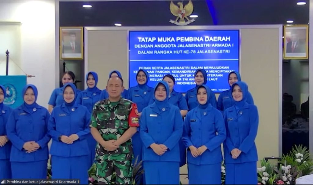 TNI AL, Bandung,- Komandan Lanal Bandung selaku Pembina Jalasenastri Cabang 9 Korcab III DJA I Kolonel Laut (KH/W) Dr. Renny Setiowati, S.T., M.Sc., M.Tr.Hanla., didampingi Wakil Ketua dan Pabinhar, serta Pengurus Jalasenastri Cabang 9 Korcab III DJA I mengikuti Tatap Muka Pembina dengan Anggota Jalasenastri Armada I secara Virtual, bertempat di Aula Mako Lanal Bandung, Jalan Aria Jipang No. 8 Kota Bandung, Kamis (15/08/2024).