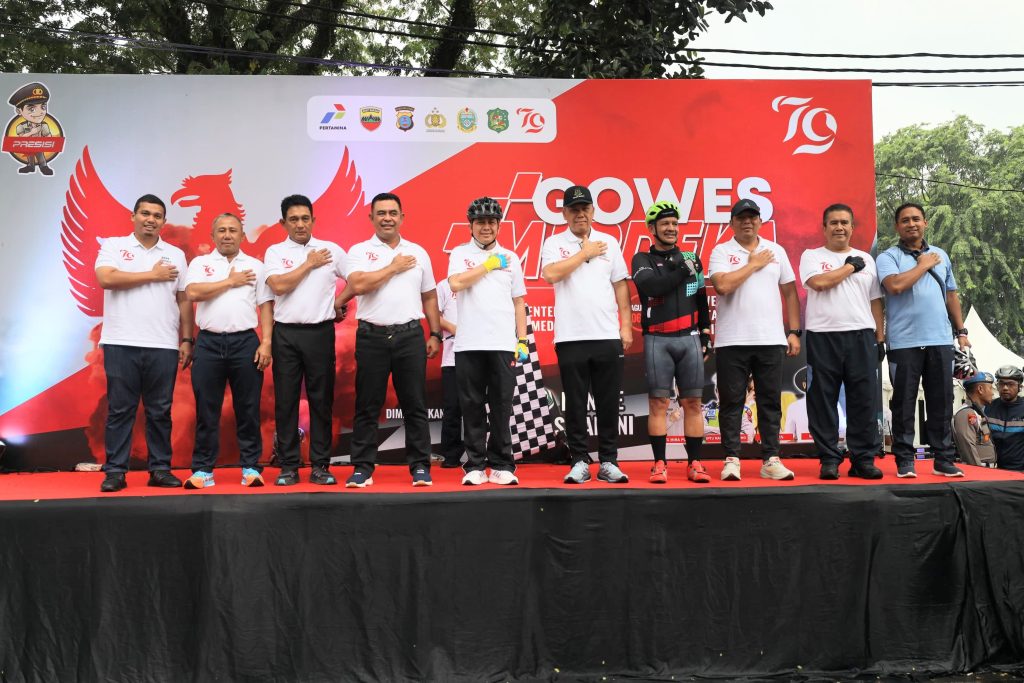 TNI AL, Belawan,- Komandan Pangkalan Utama TNI AL I (Danlantamal I) Brigjen TNI (Mar) Jasiman Purba, S.E., CHRMP., beserta Forum Koordinasi Pimpinan Daerah (Forkopimda) Sumatera Utara menghadiri kegiatan melepas Gowes Bhayangkara Merdeka dalam rangka Hari Ulang Tahun Ke-79 Kemerdekaan Republik Indonesia, bertempat di Lapangan Benteng, Medan, Sumatera Utara, Minggu (18/8/2024).