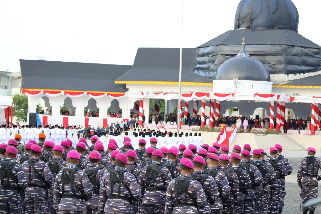 TNI AL, Belawan,- Komandan Pangkalan Utama TNI Angkatan Laut I (Danlantamal I) Brigjen TNI (Mar) Jasiman Purba, S.E., CHRMP., diwakili Wadan Lantamal I Kolonel Laut (P) Siswo Widodo, S.T., beserta Forkopimda Provinsi Sumatera Utara menghadiri Upacara Penurunan Bendera Merah Putih dalam rangka Hari Ulang Tahun (HUT) Ke-79 Kemerdekaan Republik Indonesia Tahun 2024 dipimpin oleh Pj. Gubernur Sumatera Utara Agus Fatoni, bertempat di Lapangan Astaka, Jalan Willem Iskandar, Deli Serdang Sumatera Utara, Sabtu (17/8/2024).