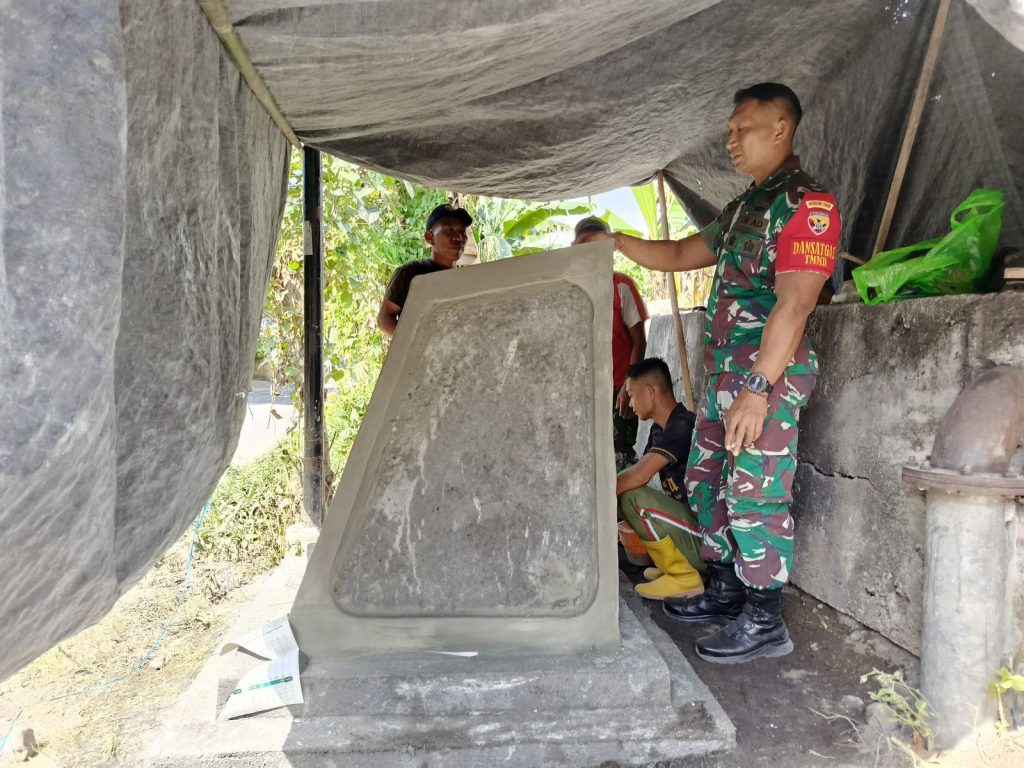 Lombok Timur – Komandan Kodim 1615/Lombok Timur (Lotim) Letkol Inf Bayu Sigit Dwi Untoro turun langsung mengecek pembangunan prasasti Program TNI Manunggal Membangun Desa (TMMD) Ke-121 di pintu masuk Dusun Loyok, Desa Loyok, Kecamatan Sikur, yang menjadi salah satu desa lokasi TMMD Ke-121. Selasa (20/08/2024).