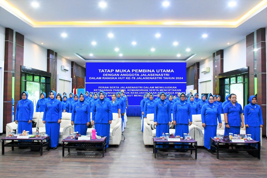 TNI AL, Belawan,- Komandan Pangkalan Utama TNI Angkatan Laut I (Danlantamal I) Brigjen TNI (Mar) Jasiman Purba, S.E., CHRMP., didampingi Ketua Korcab I DJA I Ny. Othy Jasiman Purba, menghadiri acara Tatap Muka yang dipimpin oleh Kepala Staf Angkatan Laut (Kasal) Laksamana TNI Dr. Muhammad Ali, S.E., M.M., M.Tr.Opsla., selaku Pembina Utama Jalasenastri dan Ketua Umum Jalasenastri Ny. Fera Muhammad Ali, dalam rangka menyambut HUT Ke-78 Jalasenastri Tahun 2024, bertempat di Gedung OB Sya’af Mako Koarmada RI, Jumat (23/8/2024).