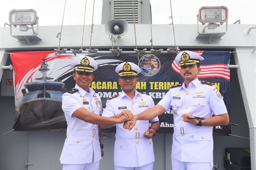 TNI AL, Belawan,- Komandan Satuan Kapal Patroli (Dansatrol) Lantamal I Letkol laut (P) Ristanto Putro, S.M., M.Tr. Opsla., CHRMP., memimpin Upacara Serah Terima Jabatan Komandan KRI Lepu-861 dari Mayor Laut (P) Zul Supri Nazara, S.E., S.T., kepada Mayor Laut (P) Anshari Ahmad Junaidi Harahap, bertempat di Geladak KRI Lepu-861 yang sandar di Dermaga Mako Lantamal I, Jalan Serma Hanafiah No.01 Belawan, Sumatera Utara, Jumat (23/8/2024).