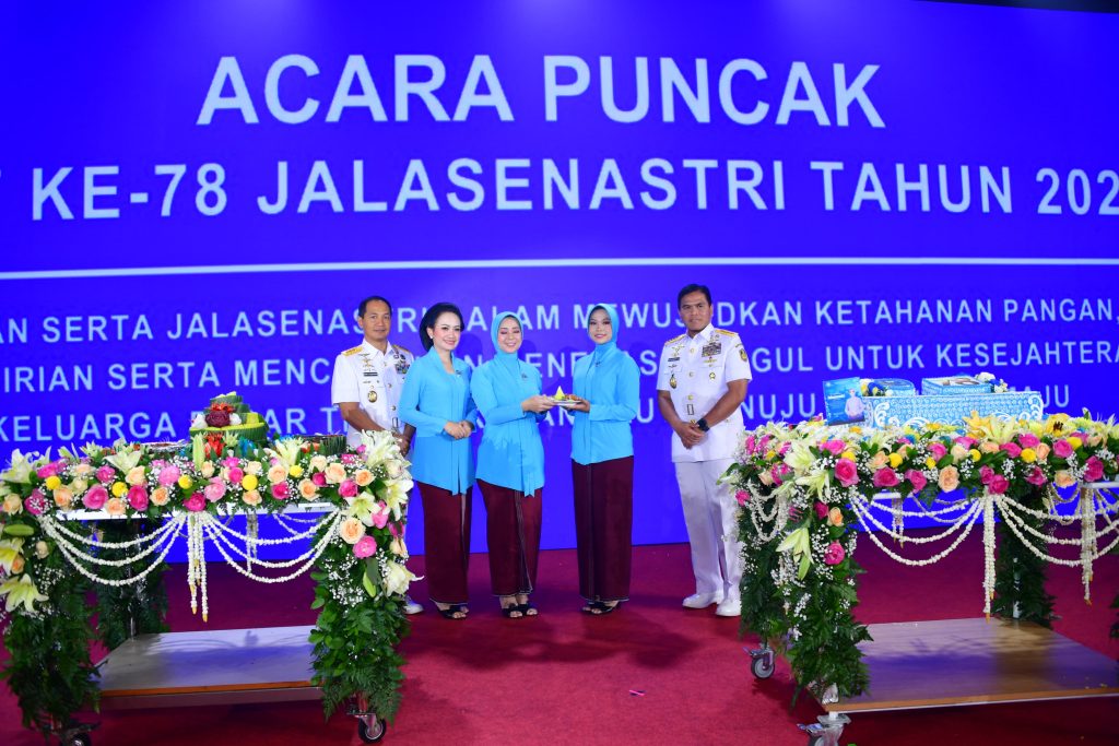 TNI AL, Belawan,- Komandan Pangkalan Utama TNI Angkatan Laut I (Danlantamal I) Brigjen TNI (Mar) Jasiman Purba, S.E., CHRMP., didampingi Ketua Korcab I DJA I Ny. Othy Jasiman Purba, menghadiri acara puncak peringatan Hari Ulang Tahun (HUT) Ke-78 Jalasenastri Tahun 2024, dipimpin oleh Kepala Staf TNI Angkatan Laut (Kasal) Laksamana TNI Dr. Muhammad Ali, selaku Pembina Utama Jalasenastri didampingi Ketua Umum Jalasenastri Ny. Fera Muhammad Ali, bertempat di Balai Samudera, Kelapa Gading, Jakarta Utara, Selasa (27/8/2024).