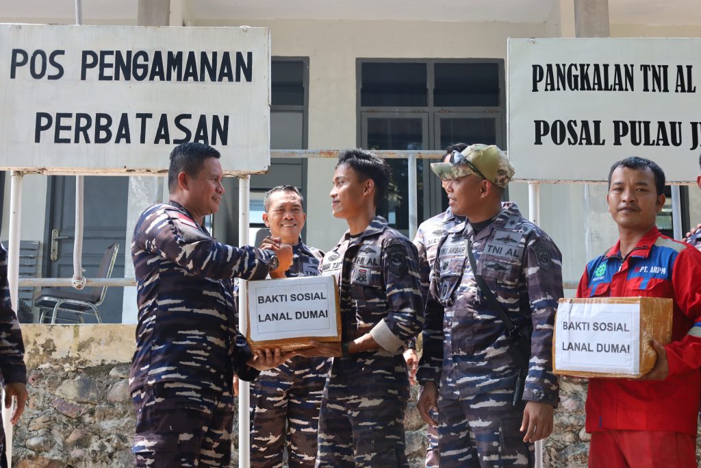 Guna menjaga moril dan semangat juang prajurit serta bentuk perhatian pimpinan TNI AL, Danlanal Dumai membagikan paket sembako kepada para prajurit Posal Pulau Jemur serta petugas PLN yang ada disana.