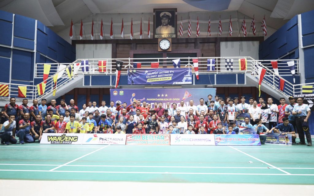 TNI AL-Dispenlantamal3. Komandan Pangkalan Utama TNI Angkatan Laut (Danlantamal) III Jakarta Brigjen TNI (Mar) Harry Indarto, S.E., M.M. menghadiri acara penutupan Pangkoarmada RI Open Badminton tahun 2024 yang ditutup oleh Panglima Komando Armada (Pangkoarmada) RI Laksdya TNI Dr. Denih Hendrata, S.E., M.M., CHRMP. dihadiri Ketua Bidang Keabsahan dan Sistem Informasi Persatuan Bulutangkis Seluruh Indonesia (PBSI) M. Sya’roni mewakili Ketua Umum PBSI Komjen Pol Dr. M. Fadil Imran, M.Si. bertempat di Gedung Olah Raga (GOR) O.B. Syaaf Koarmada RI Jl. Gunung Saharai No. 67, Jakarta Pusat, Sabtu (31/08/2024).