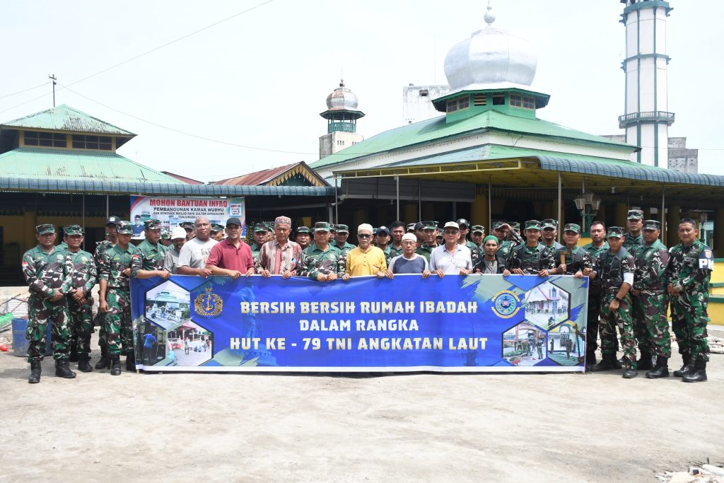 TNI AL, TAnjung Balai,- Masih dalam rangkaian menyongsong HUT Ke-79 TNI Angkatan Laut Tahun 2024 pada 10 September mendatang, Prajurit Lanal Tanjung Balai Asahan melaksanakan pembersihan Mesjid Raya Sultan Abdul Djalil Rahmadsyah Kota Tanjungbalai, Kamis (05/09/2024).