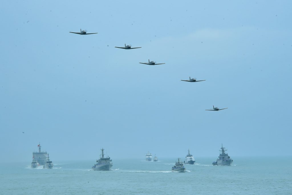 TNI Angkatan Laut, Koarmada RI, Jakarta 10 September 2024-Panglima Komando Armada Republik Indonesia (Pangkoarmada RI) Laksamana Madya TNI Dr. Denih Hendrata, S.E., M.M., CHRMP., mengikuti upacara peringatan HUT ke-79 TNI Angkatan Laut dengan Inspektur Upacara (Irup) Pamglima TNI Jendral TNI Agus Subiyanto yang didampingi Kepala Staf Angkatan Laut (Kasal) Laksamana TNI Dr. Muhammad Ali, S.E., M.M., M.Tr. Opsla bertempat di geladak heli KRI dr. Rajiman Wedyodiningrat-992 yang berlayar di Teluk Jakarta. Selasa (10/9).