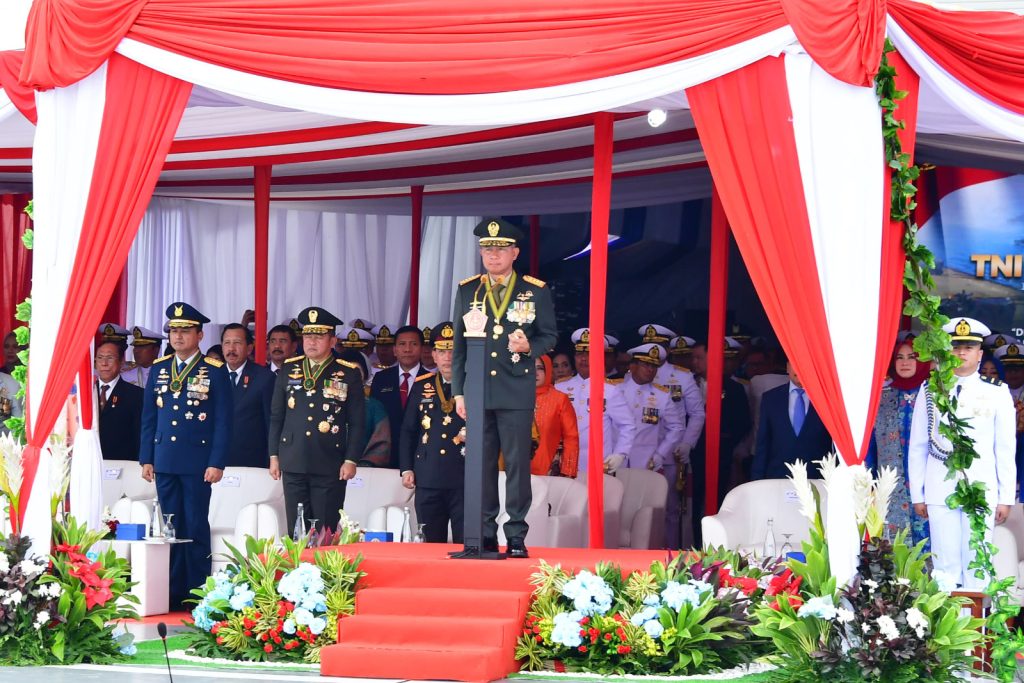 Selanjutnya Panglima TNI menjelaskan “Kita juga patut bersyukur bahwa di tengah berbagai situasi yang sulit ini, TNI Angkatan Laut selalu hadir dan mampu menunjukkan kapabilitasnya untuk mendukung pemerintah dalam berbagai misi perdamaian dunia, penanggulangan bencana alam, dan khususnya mobilisasi laut untuk misi mulia pengiriman bantuan kemanusiaan ke Palestina. Kondisi global dan regional secara langsung maupun tidak langsung akan memberikan dampak pada negara kita. TNI Angkatan Laut sebagai simbol kejayaan kekuatan laut nasional hendaknya dapat bersikap adaptif terhadap segala perkembangan lingkungan strategis, termasuk teknologi yang menyertainya demi keutuhan persatuan dan kesatuan bangsa Indonesia. Berkaitan tahun 2024 ini yang merupakan tahun politik menuju pemilihan kepala daerah serentak bulan November nanti, dan tidak bosan-bosan saya mengingatkan kembali kepada segenap prajurit TNI Angkatan Laut untuk menjaga komitmen Netralitas TNI yang merupakan kehendak rakyat Indonesia”.