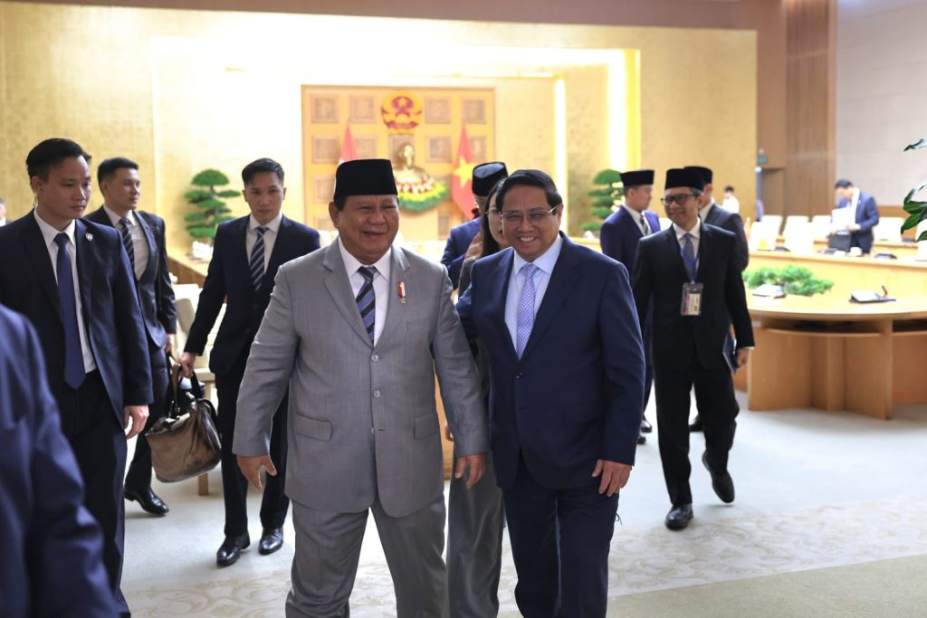 Vietnam – Di akhir kunjungan kerja ke Vietnam, Menteri Pertahanan RI Prabowo Subianto melakukan pertemuan dengan Perdana Menteri Vietnam H.E. Pham Minh Chinh, di Vietnam, pada Sabtu (14/9/2024).